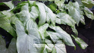 Tanaman syngonium atau arrowhead plant memiliki daun berbentuk seperti mata panah. Ketika masih pendek dan belum tumbuh sulur, daun- daun tanaman ini masih berbentuk mata panah. Namun, ketika semakin dibiarkan tumbuh merambat, lambat laun daunnya akan berubah dan terlihat terbagi menjadi tiga segmen, bahkan akan bertambah ketika tanaman ini dibiarkan untuk tumbuh liar. Perbanyakan syngonium bisa dilakukan dengan biji ataupun stek batang. Namun, perbanyakan dengan stek batang lebih populer untuk dilakukan.